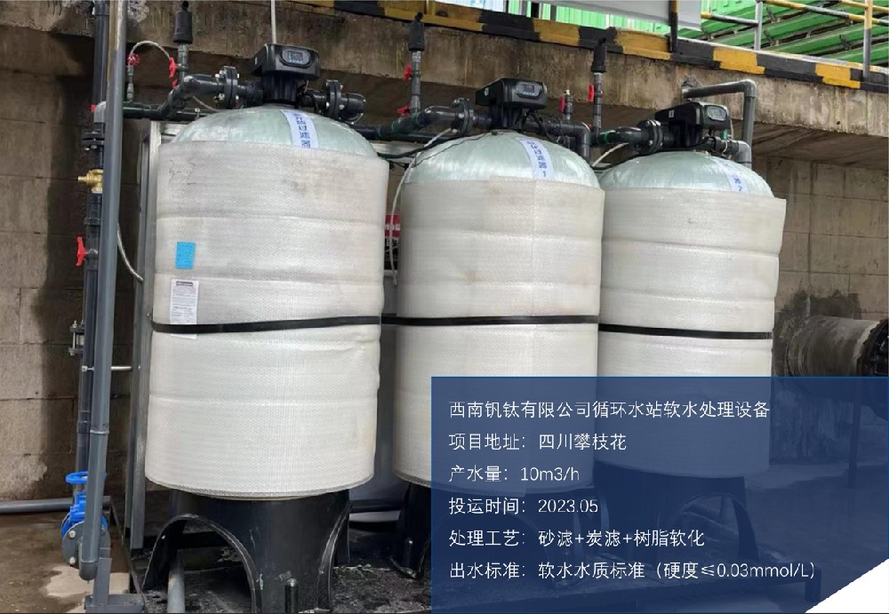 項目地址:四川攀枝花產(chǎn)水量:10m3/h投運時間:2023.05處理工藝:砂濾+炭濾+樹脂軟化出水標準:軟水水質(zhì)標準(硬度≤0.03mmol/L)